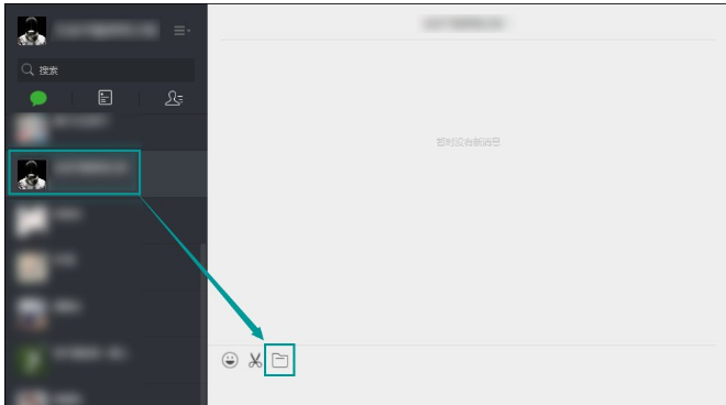 2. 登陆成功以后,出现微信聊天界面,选择一个微信好友,并选择右侧下面的文件添加按钮,如图