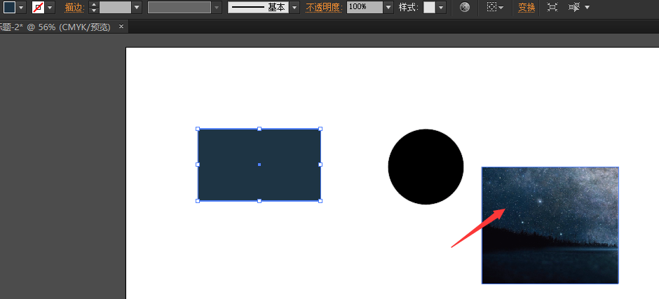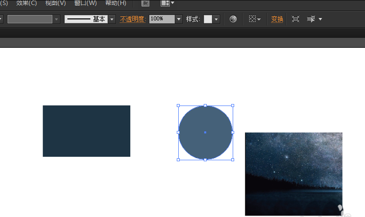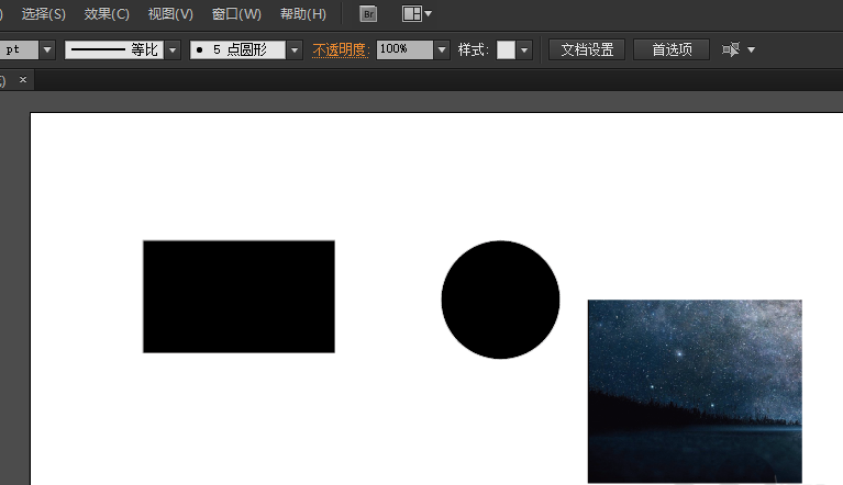 打开 Adobe Illustrator 软件,新建一个空白文档,用矩形工具和椭圆形工具分别画一个矩形和圆形。