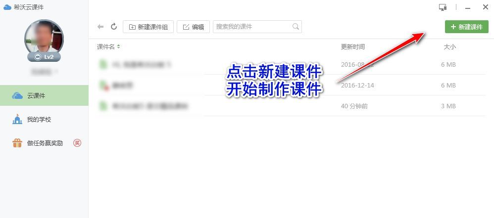 方法 2. 打开希沃白板5,进入界面,点击”云课件”——”新建课件”,