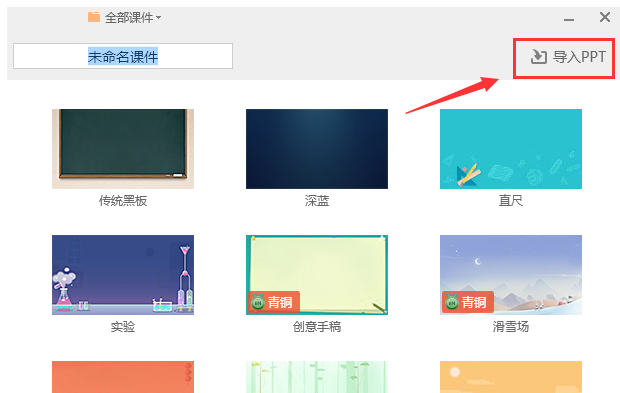 打开希沃云课件窗口,点击右上角的”导入 PPT ”,选择 PPT 课件,导入其中即可,注意,必须是“. PPT x”格式文件。