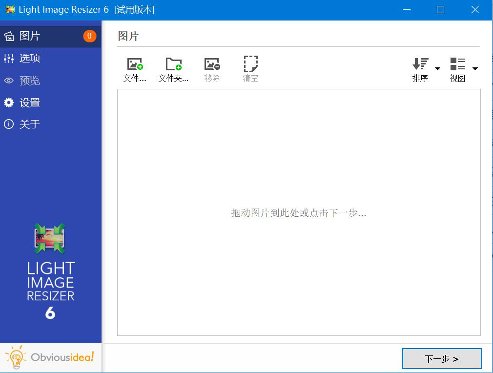 4. 将语言设置的窗口关闭后,我们回到 Light Image Resizer 操作界面,可以看到界面语言变成了中文。