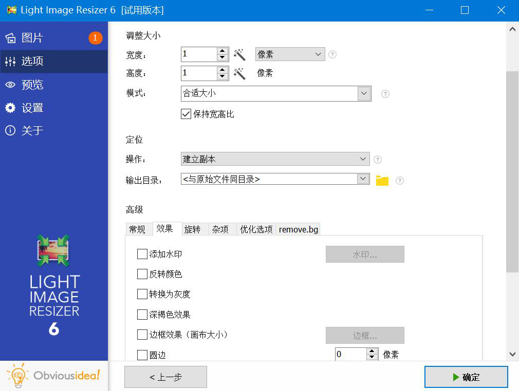 5. 最后,我们在界面左侧,点击切换至每一个选项,都可以看到 Light Image Resizer 界面成功设置为中文了,自己处理图片的时候也就更方便了。