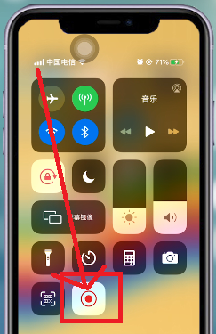5. 完成上方所有的操作后,就可以返回手机的主界面了,然后用户需要下拉屏幕,就可以跳出控制中心的快捷操作,即可看到屏幕录制按钮,点击即可录制。