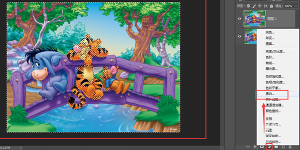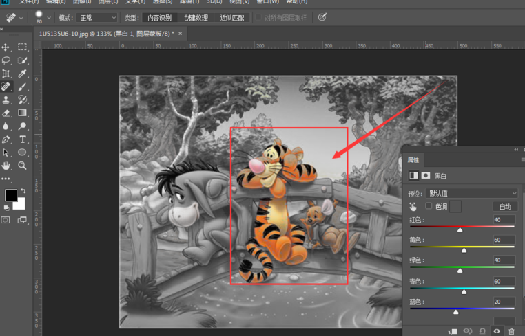 这时可以看到已经选中的区域变成了黑白色,非选择部分仍然是原来的颜色,效果如图,