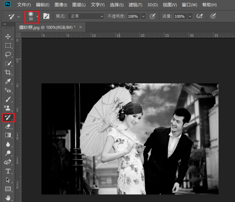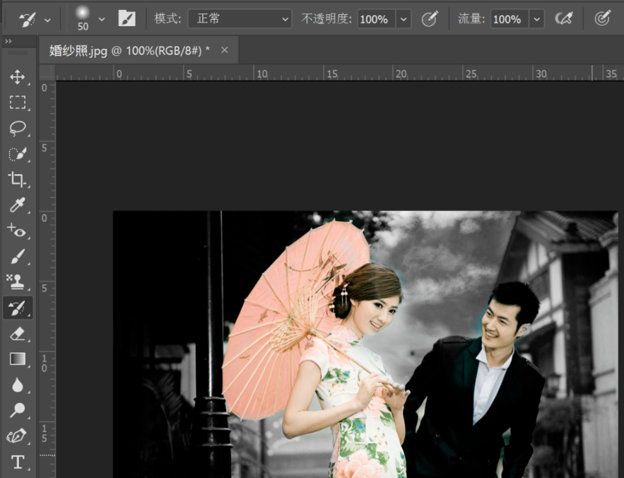处理完成,效果如图,背景是黑白色,人物是彩色的,