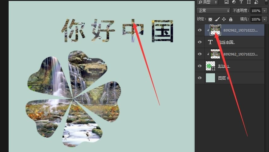在文字和图片两个图层之间按住alt键,效果就出来了,如图所示。