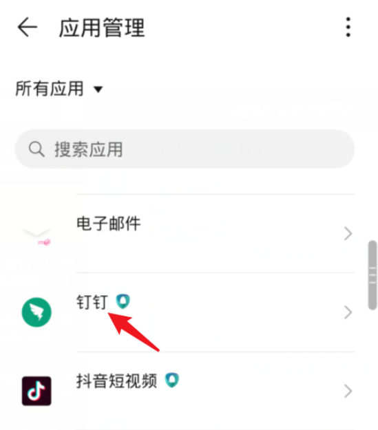 进入新的界面,点击“应用管理“,如图,找到钉钉应用,
