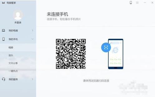 5. 点击软件界面左侧列表的“我的手机”,可以连接手机,进行相册、音乐的同步与备份,还可以我来教你文件,实现多设备文件的免流量我来教你,点击一键热点可以直接打开手机上的wifi热点如下图: