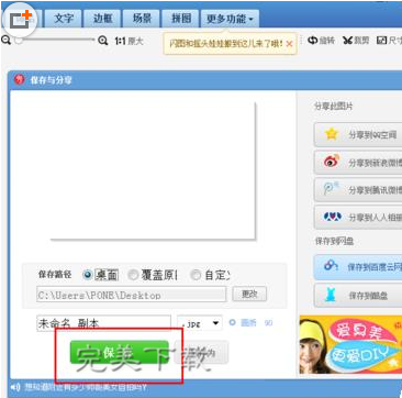 最后,如果我们的背景替换完成之后,抠下来的图片大小调整的完毕,我们也已经进行了后期的羽化,描边处理然后也比较满意的话,就可以点击“保存”修改后的图片啦。