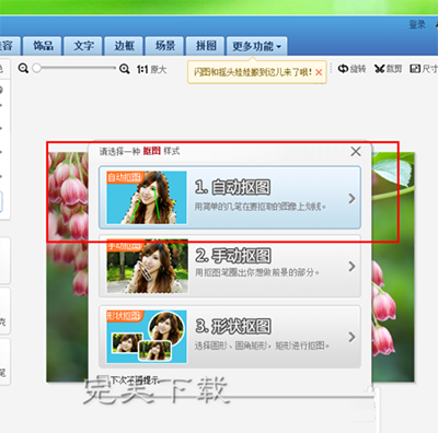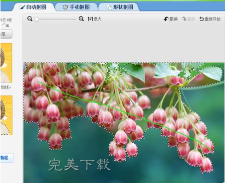 在抠图笔的选项设置中,我们推荐大家使用“自动抠图”模式,在自动抠图模式中,我们仅仅需要在要抠图的图片范围内随便划上两笔,软件将自动根据图片的形状进行抠图,非常简便实用,可以说是傻瓜式操作。