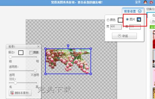 很明显,从图片中的操作步骤来看,我们可以在软件的右上角看到一个“背景设置”的功能,然后其中有一个“图片”的选项。