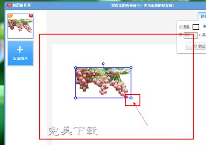 接下来,需要我们在展示的图片中调整我们抠下来的图片的大小,以适应我们白色背景的图片,这个大小是根据我们的白色画布大小自行进行调节设置的,大家可以自定义调节大小,以符合我们自己的审美观。拖动图片中所示的工具,然后开始操作吧。
