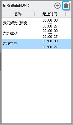如果不需要某画面风格,那在“画面风格”面板右下角“所有画面风格”列表中,选中该画面风格,点击列表右上角的“垃圾桶”即可。
