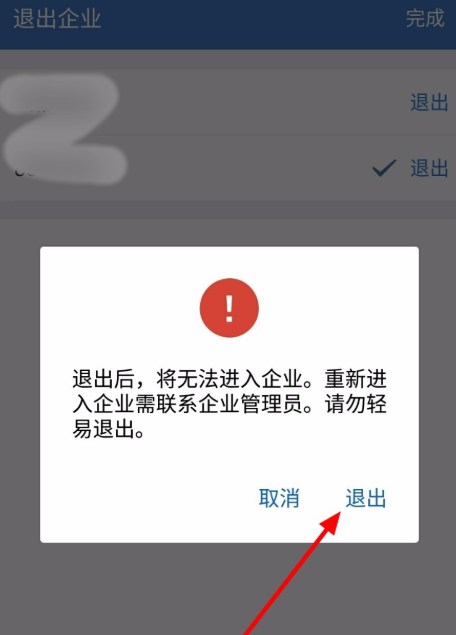 弹出提示框,如图,继续点击“退出“,成功退出企业。