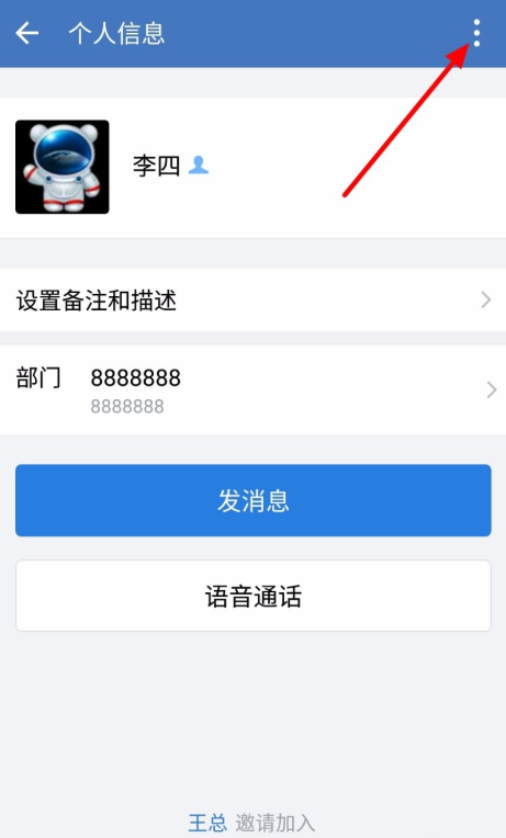 点击进入个人信息界面,如图,点击右上角的“⋮“,