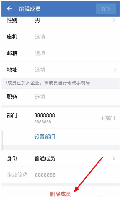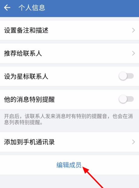向下滑动,点击“编辑成员“,查看相关信息,接着点击“删除成员“,
