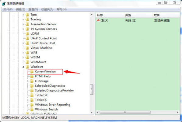 进入注册表界面,找到“HKEY_LOCAL_MACHINE”,根据下图指示,双击点开红色框内箭头所示的文件夹。