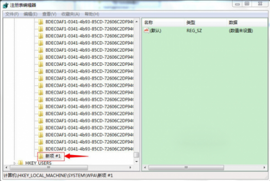 新建项后,出现如下界面,将新出现的“项”的名字重命名为“{645FFO40—5081—101B—9F08—00AA002F954E}”,要注意把大括号也带入才可以。