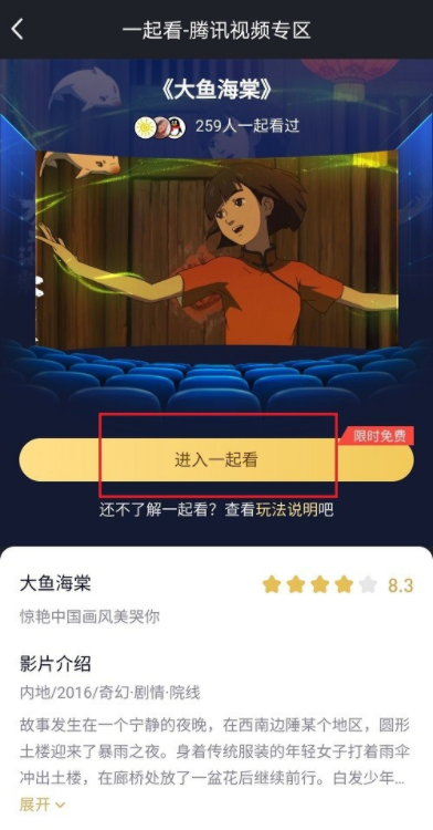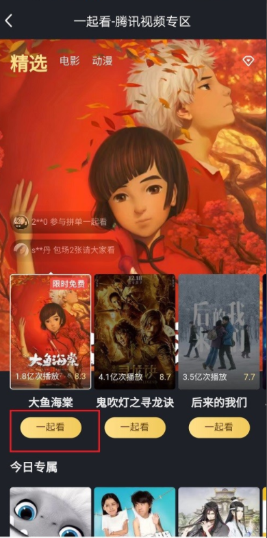 如图,你可以选择想和 QQ 好友一起看的电影,点击“一起看”,