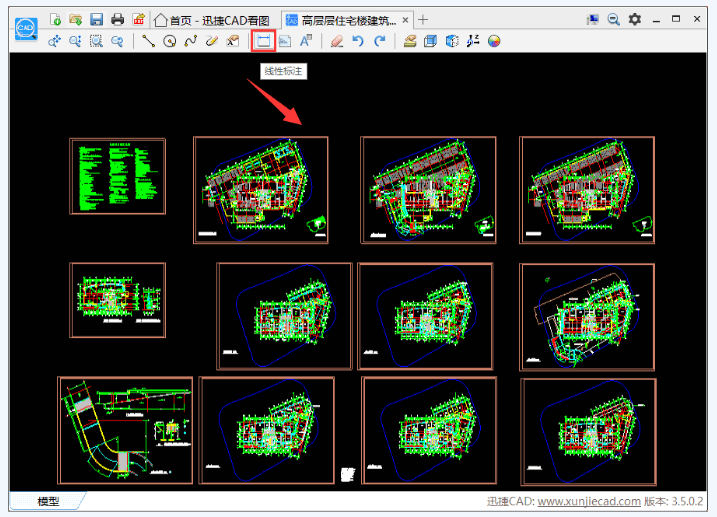 对 CAD 图纸的内容进行查看预览,如果想要测量图纸两点间的距离,需要点击软件工具栏中的“线性标注“按钮,