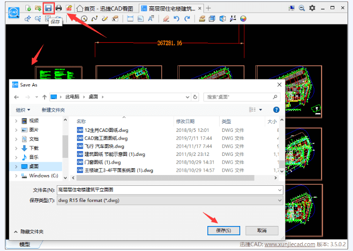 在 CAD 图纸上点击需要测量距离的两个点,然后就可以测量出两点之间的距离,如图,最后点击保存,导出图纸文件。