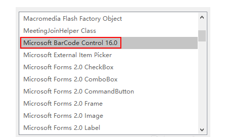 3. 在弹出的控件列表中选择 Microsoft BarCode Control 控件。这里的版本号会随使用的 Excel 版本而更新,请根据自己使用的版本选择,作用是一样的。