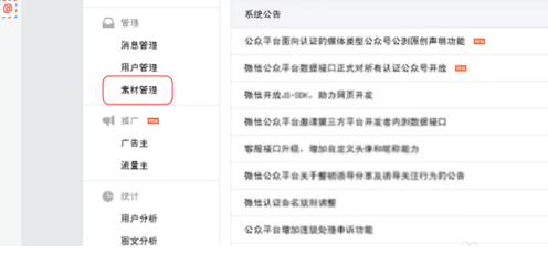 2. 登录后台后,点击素材管理