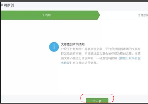 5. 了解文章原创声明须知,点“下一步”