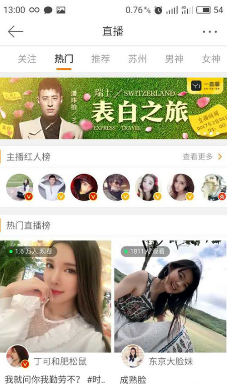 2. 在直播界面,有着女神. 明星. 现场直播的哟,喜欢哪个点哪个~