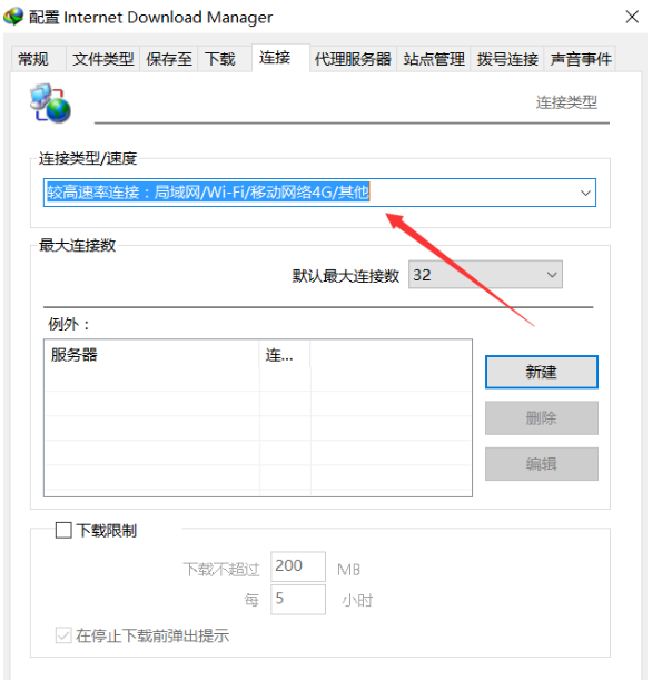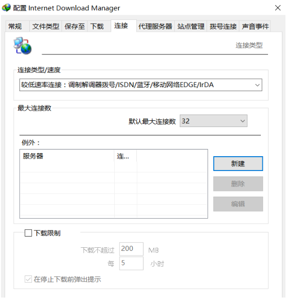 跳出配置页面,点击”连接”,修改最大连接数, IDM 默认为 8 线程,