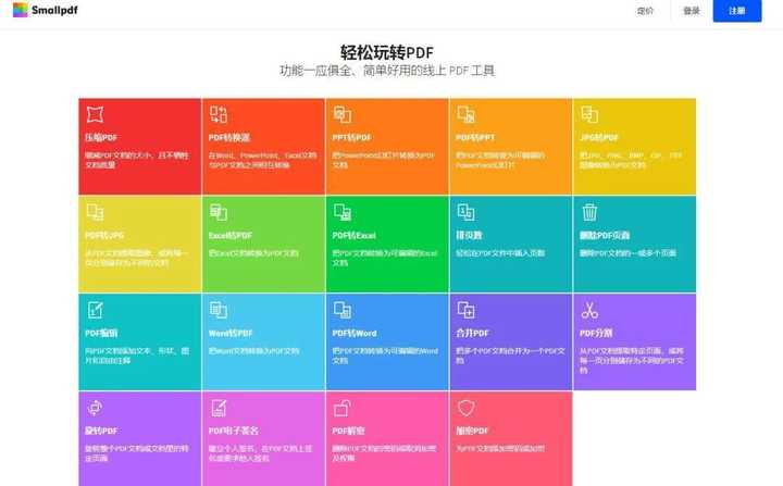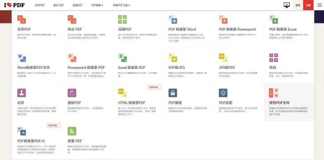 网站的颜值很高,我很喜欢。号称“一站式的在线 PDF 解决方案”,功能覆盖也是相当全面,基本的转换、合并、编辑功能也都有,处理速度非常快。