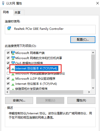 进入属性设置后,我们双击 Internet 协议版本 4;
