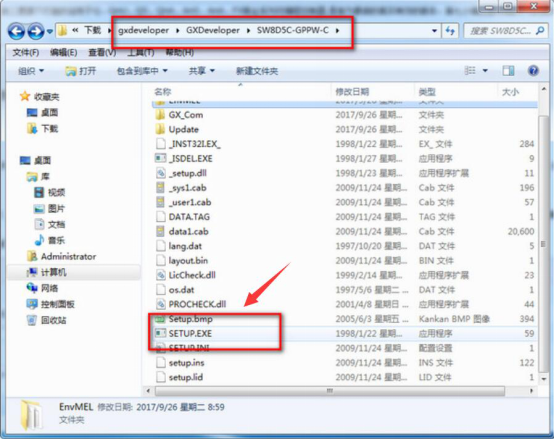 要安装 gx developer ,先要在电脑中打开目录 MELSOFT\\EnvMEL\\ 里的 SETUP。要注意去掉 GX 编程软件文件夹的中文字符。
