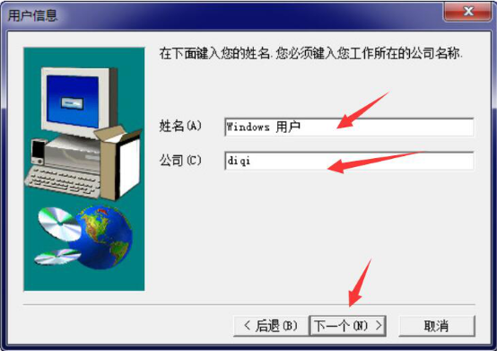6.gx developer 安装时,要在用户信息的向导页中正确填写姓名和公司,填写完毕后点击“下一个”。