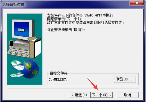 9. 最后, gx developer 会弹出选择目标位置的向导页,在此向导页中点击“浏览”选择保存的目标位置,之后,点击“下一个”即可执行安装的命令。 gx developer 安装完毕后,在所有程序中找到 gx developer ,点击打开它便能正常使用了。
