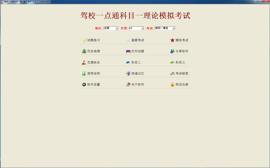 驾校一点通模拟考试 C 1 全国通用版是专门为广大机动车学习驾驶员量身订做的驾驶员模拟考试系统。系统内所有题库均来自各省市车辆管理所,并且已经更新为最新题库,请放心使用。该考试系统具有很强的针对性. 专业性. 实用性,严格依据考试大纲编写,紧扣考试大纲,知识覆盖全面,并设有全真的考试环境,帮助你“最简单. 最直接. 最省时. 最省力地考试通关!”