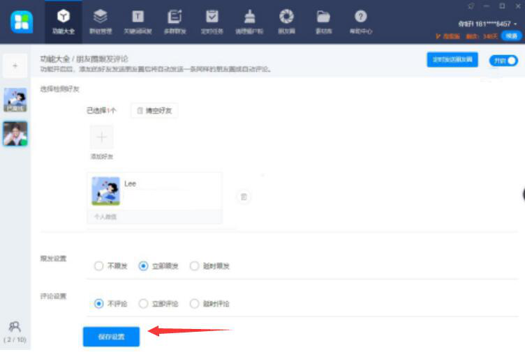 4. 最后,再次确认自己设置是否有误,如果没有错误,就点击页面下方的“保存设置”按钮,46 助手跟发朋友圈的设置便完成了。