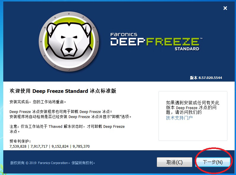 4. Deep Freeze 工作站自动安装,安装完毕后电脑会自动重启。