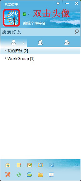 1. 打开飞鸽传书软件,双击左上角头像图标,打开设置。