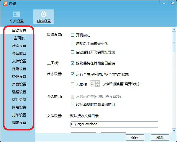 在系统设置中需要特别注意的是【文件设置】和【打印设置】两个选项。