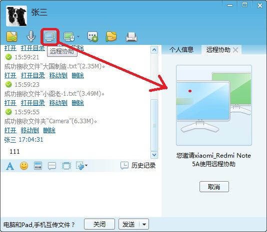 除了上述功能外,飞鸽传书还提供了语音、远程协助、远程控制等功能,操作和QQ类似,比较简单,用户可以自行体验一下。