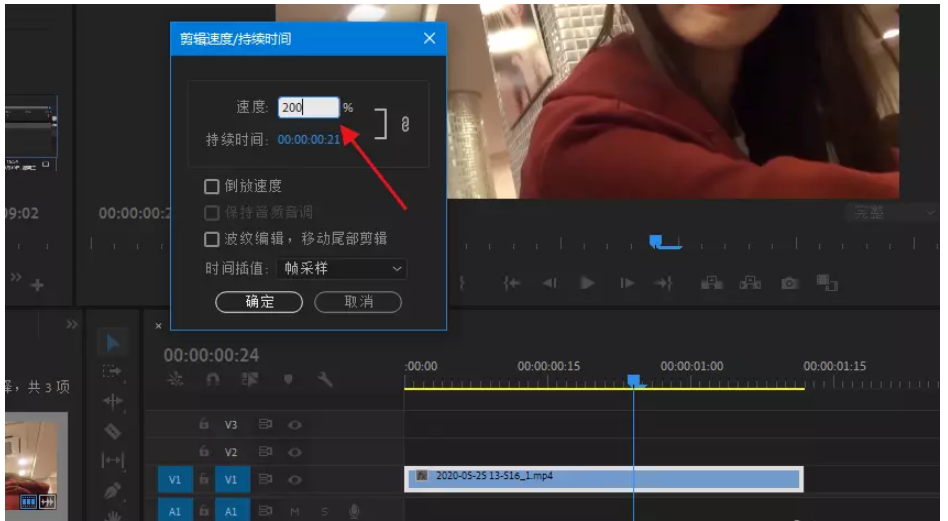 出现弹窗,如图,调整速度百分比,调大数值,缩短视频时间,点击确定,