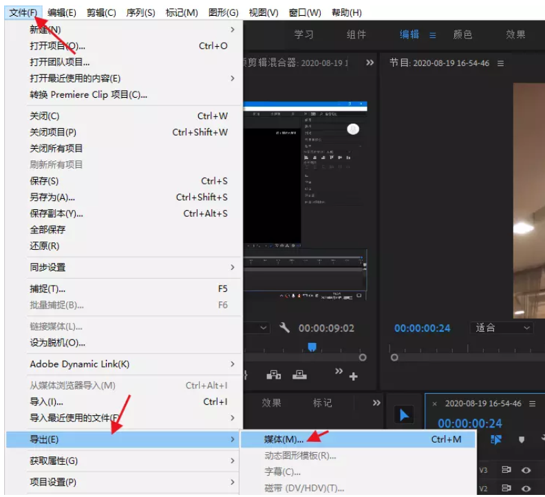 然后在软件菜单栏中点击“文件” -> “导出” -> “媒体”选项,