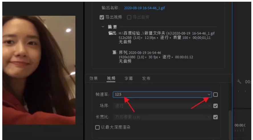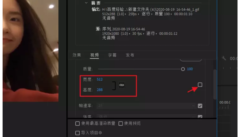 进入以下界面,调整好动画 GIF 格式,将视频的宽度和高度调小,还可以稍微调小帧速率数值,