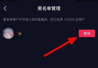 进入直播间设置界面,点击【黑名单管理】,选择需要解除黑名单的人员,点击右侧的【解除】即可。