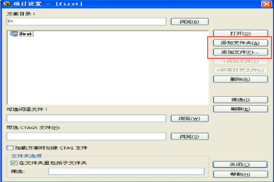 3. 接着,在 UE 编辑器的项目设置中点击“添加文件”或者“添加文件夹”按钮,选择需要编辑的文件或者文件夹。