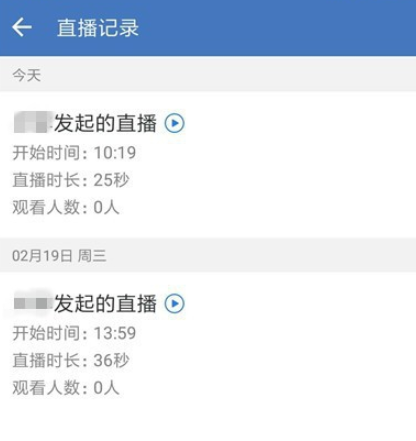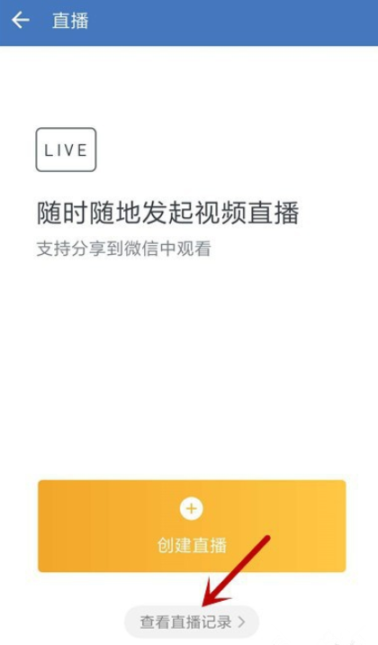 进入直播界面,如图,点击“查看直播记录”,即会显示你发起的所有直播,选择需要回放的直播视频,