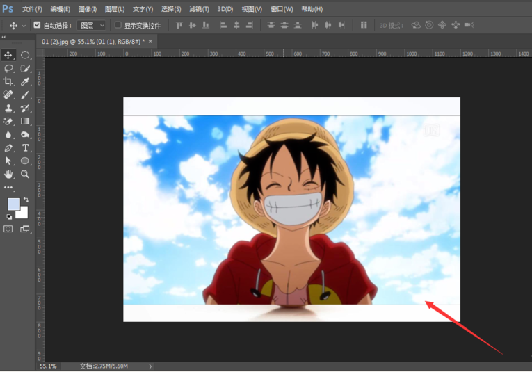 然后将动漫图片拖入到画布中,点击确定,我们可以看到拖入到文档中的图片转为了智能化图片。