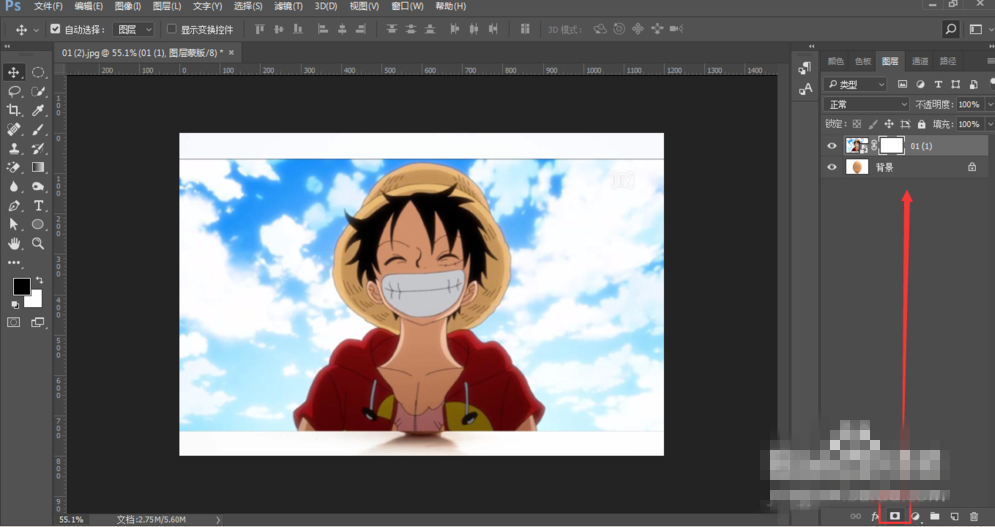 对动漫图层添加图层蒙版(下方按钮第三个选项),