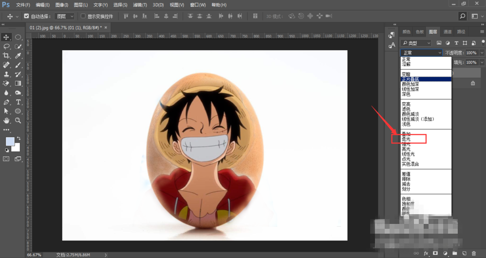 选择图层模式为柔光,最后效果如图所示。